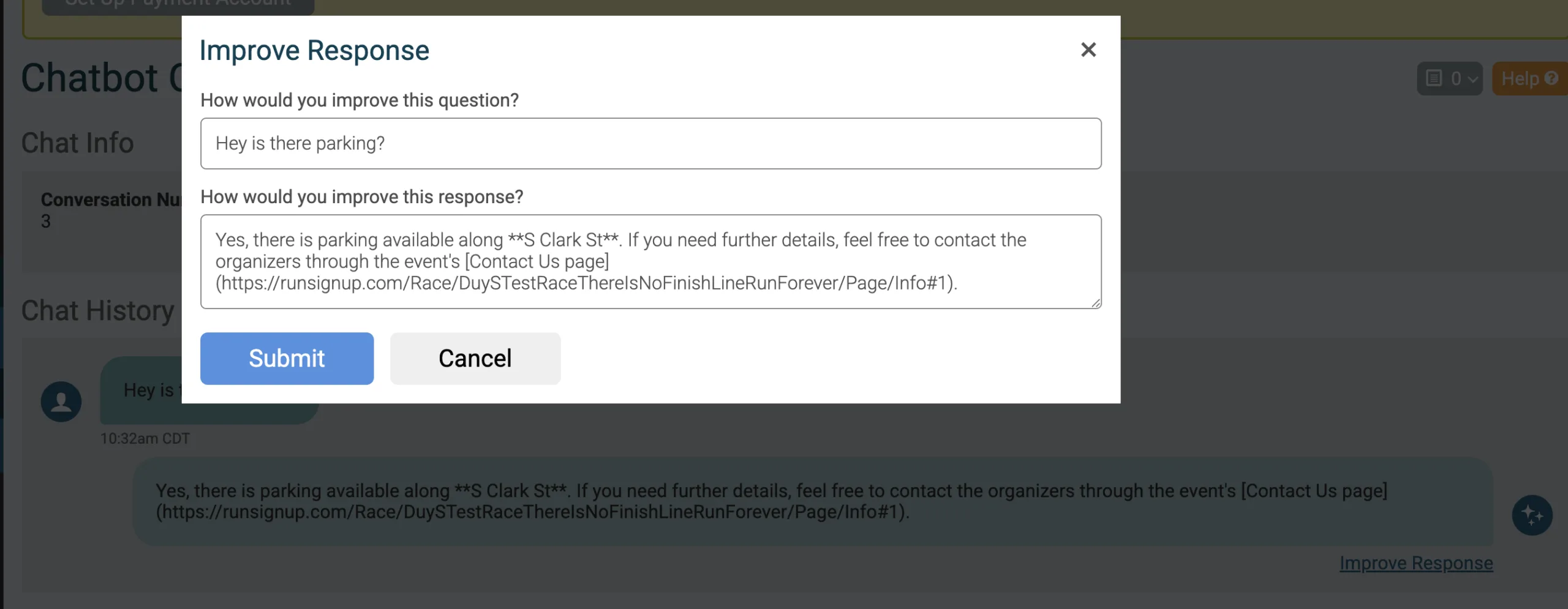Not satisfied with how the chatbot answered a question? You can now improve responses directly from the Conversations page. Update the answer, retrain the bot, and it will respond exactly the way you want in the future.