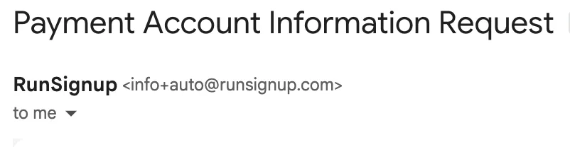 - Subject Line: “Race Payment Setup Invitation: RACE NAME.”