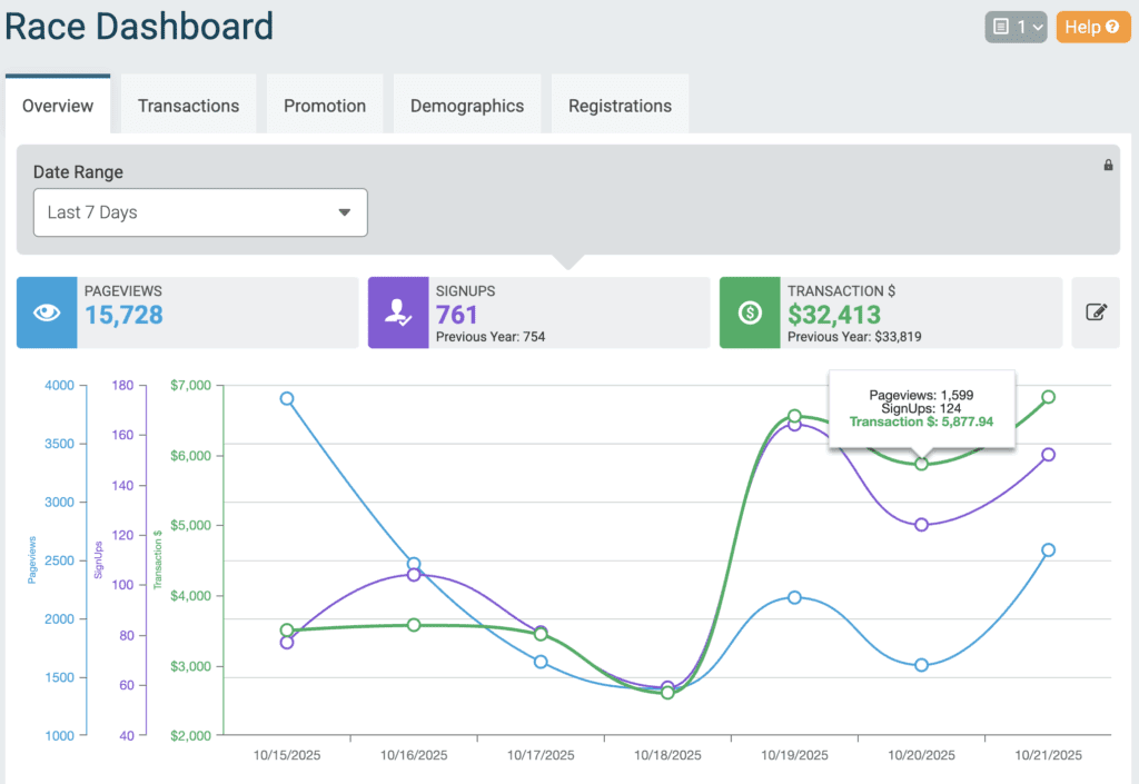 When we built our Dashboard Stats for page views, signups and transactions that show in that graph above and in some of the colored tiles, we decided to use a lightweight mechanism that was separate from our primary system since it need to handle a huge amount of traffic (every click on our website gets tracked – 45,000 pageviews per minute last Thanksgiving as an example) and we did not want to burden our primary system with that. We also used light weight technology – Lambdas and a different database architecture. It is NOT transactional and therefore is not guaranteed to be 100% accurate.
