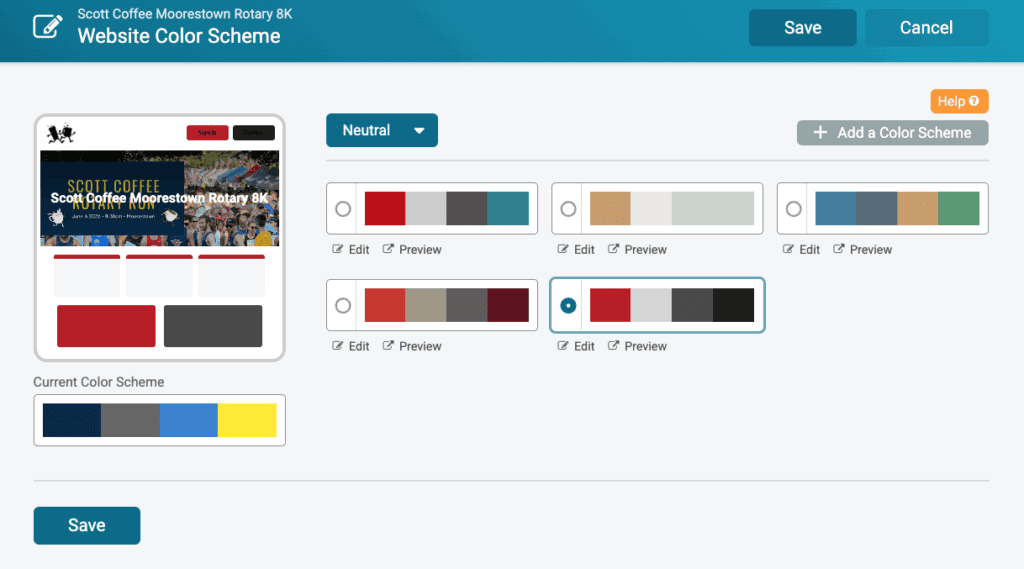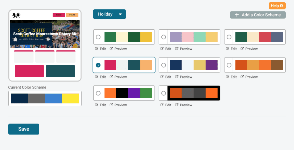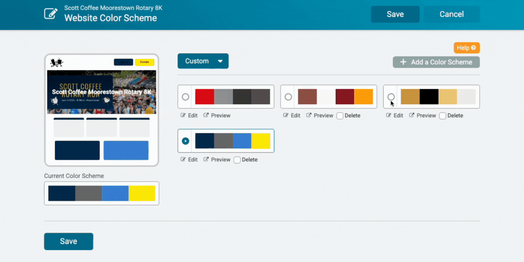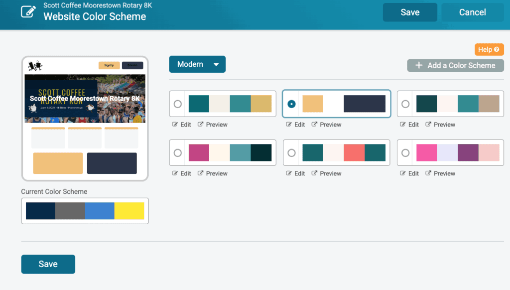 We’ve added dozens of new color schemes for Websites V2. The new color scheme dropdown menu organizes different theme options so you can easily use your custom theme, or choose one from across our new categories. In addition, a new website preview lets you see your color scheme before saving.