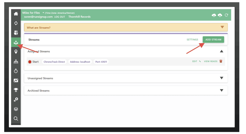 - Streams: how reads enter RaceDay Scoring (including ChronoTrack Direct and file-based options)