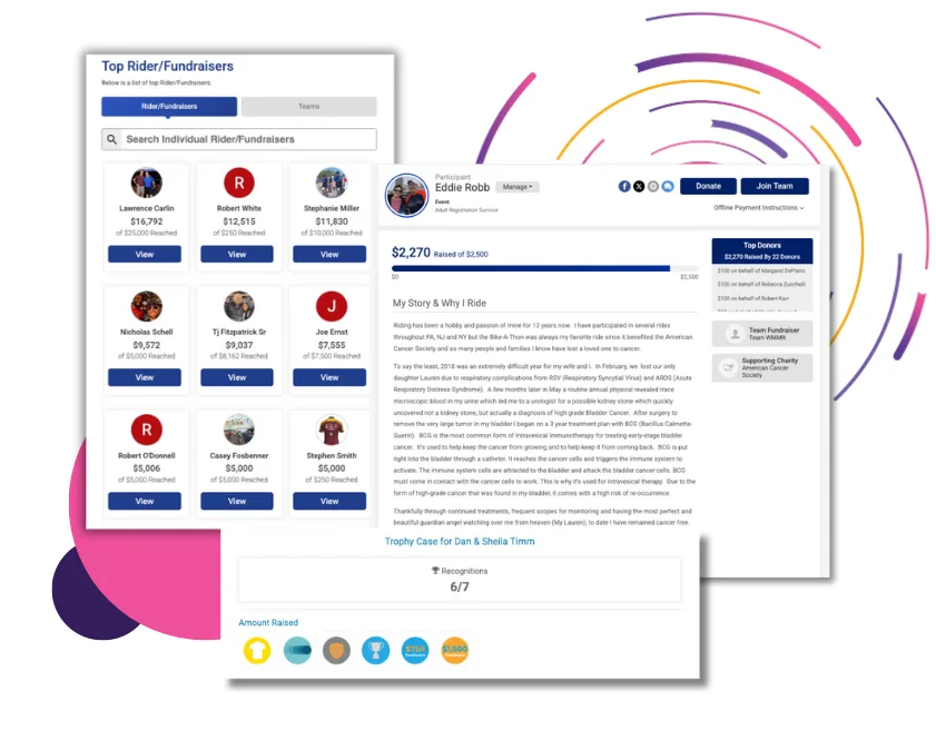 - Gamify your fundraising with automated fundraiser leaderboards, digital trophy cases, and refund rewards for meeting specific donation thresholds