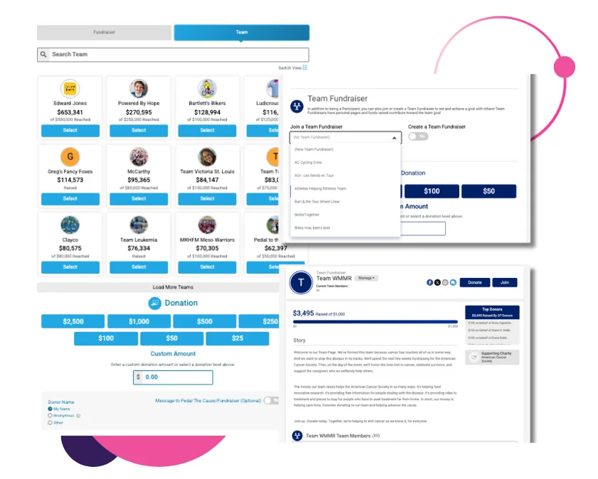- Automatically created team fundraising pages that are easy for fundraising Team Captains to manage, with customizable images and messaging